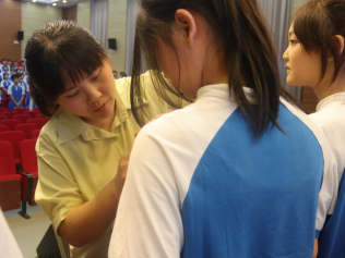 党员干部给新团员佩戴团徽