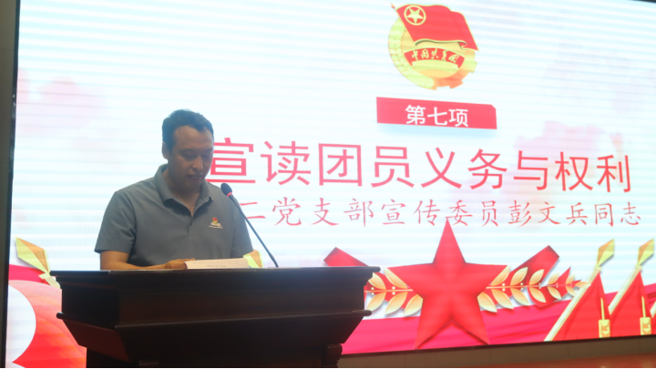 第二党支部宣传委员彭文兵同志向全体新团员详细宣读了团员义务与权利。