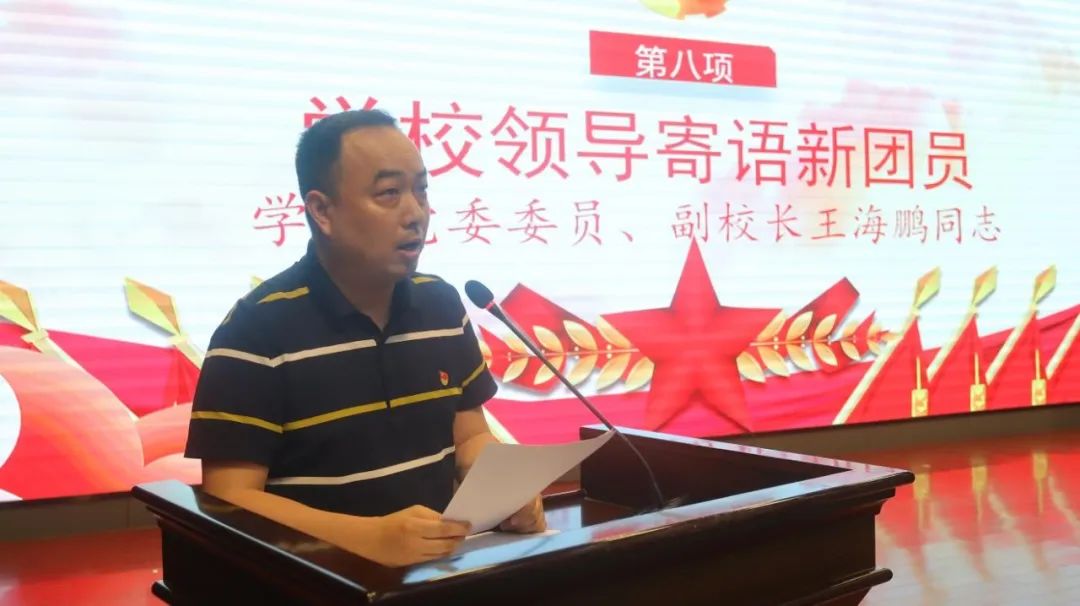 校团委书记向国伟同志宣读了《关于发展詹曼祺、倪梓康、李雅欣、黄蓉等260名优秀青年为共青团员的决定》,公布新团员名单,并向新团员表示了热烈的祝贺。