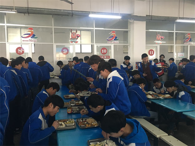 “谁知盘中餐,粒粒皆辛苦。我们不能忘记勤俭节约的传统美德,更不能忘记全国仍有1亿多贫困人口。勤俭节约是中华民族的传统美德,更是我们每一名中职学生应遵循的道德规范……”,“一粥一饭当思来之不易。勤俭不是吃苦,而是对有限资源的珍视。从今天午饭开始,让我们一起:不剩饭,不浪费!加入“光盘”族,一起对“浪费”说不!”昨日中午12时,学区二1502班学生在食堂二楼开展了“将光盘行动进行到底”的宣传活动,他们向前来打饭用餐的同学发出倡议,参与到“光盘”行动中来。食堂二楼入口处摆着写有“杜绝浪费”字样的海报,食堂墙上贴着手绘宣传图。
