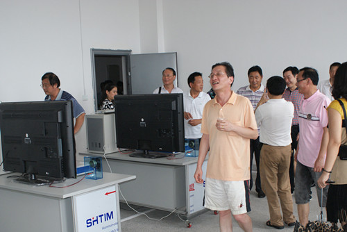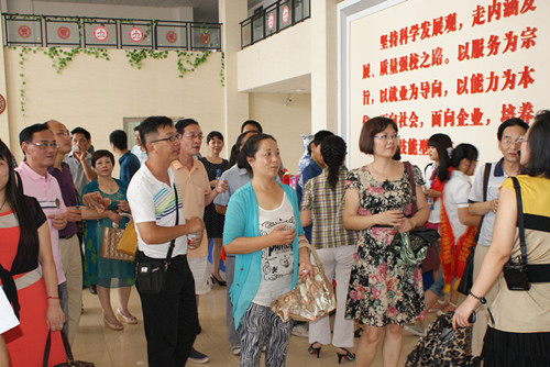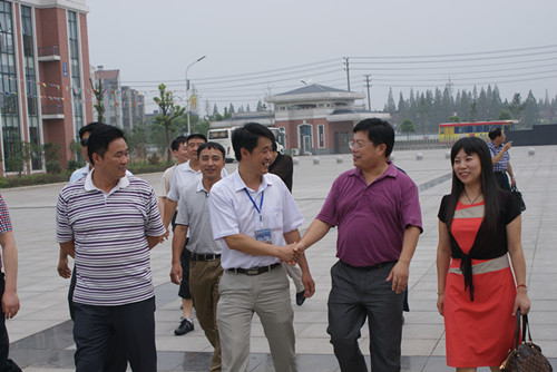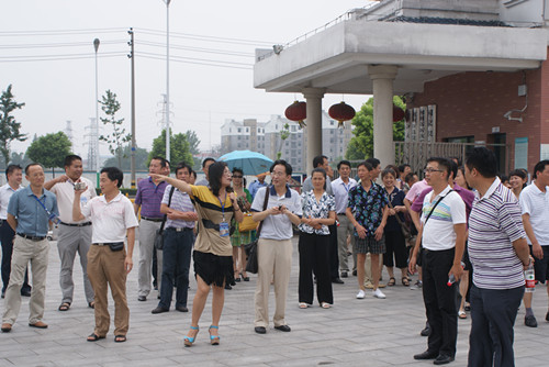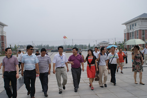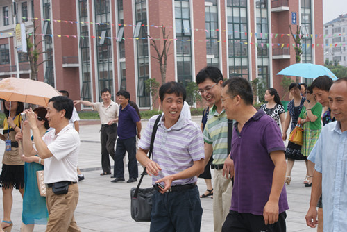 校友们在学校领导的陪同下参观了新校区并合影留念。