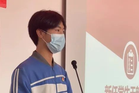 随后,新一届学生干部逐一上台进行表态发言。他们表示:将从上一任学长、学姐手中接过接力棒,做有责任、有担当的学生干部 。