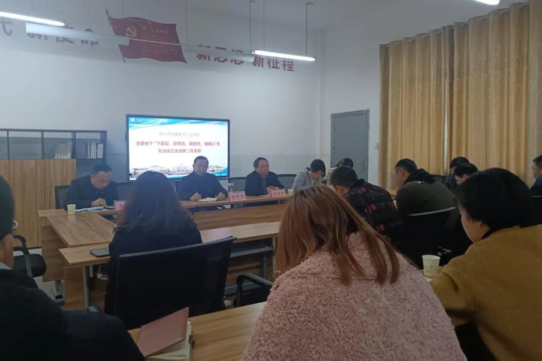 党委领导班子首先听取了二支部书记薛方同志的工作汇报。2022年12月学校支部调整、支委改选以后,二支部在新一届支部书记、支委、党小组长、党员的共同努力下,不断深入学习习近平新时代中国特色社会主义思想,全面宣传贯彻党的二十大精神,始终围绕“四个持续”夯基垒台、“三个建设”立柱架梁,扎实推进支部党建工作。但也存在学习还不够经常和主动,党建与业务工作融合不够等不足。2023年,二支部将紧紧围绕学校“规范管理上台阶,苦练内功提质量”的主线,通过“微课堂”“微小组”“微典型”“微文化”展望未来,进一步提升党支部的凝聚力、创造力、战斗力。以党务带业务、立足岗位做好本职工作,练就过硬本领。以扎实有效的举措为学校师生做好服务、办好实事,助力学校高质量发展。