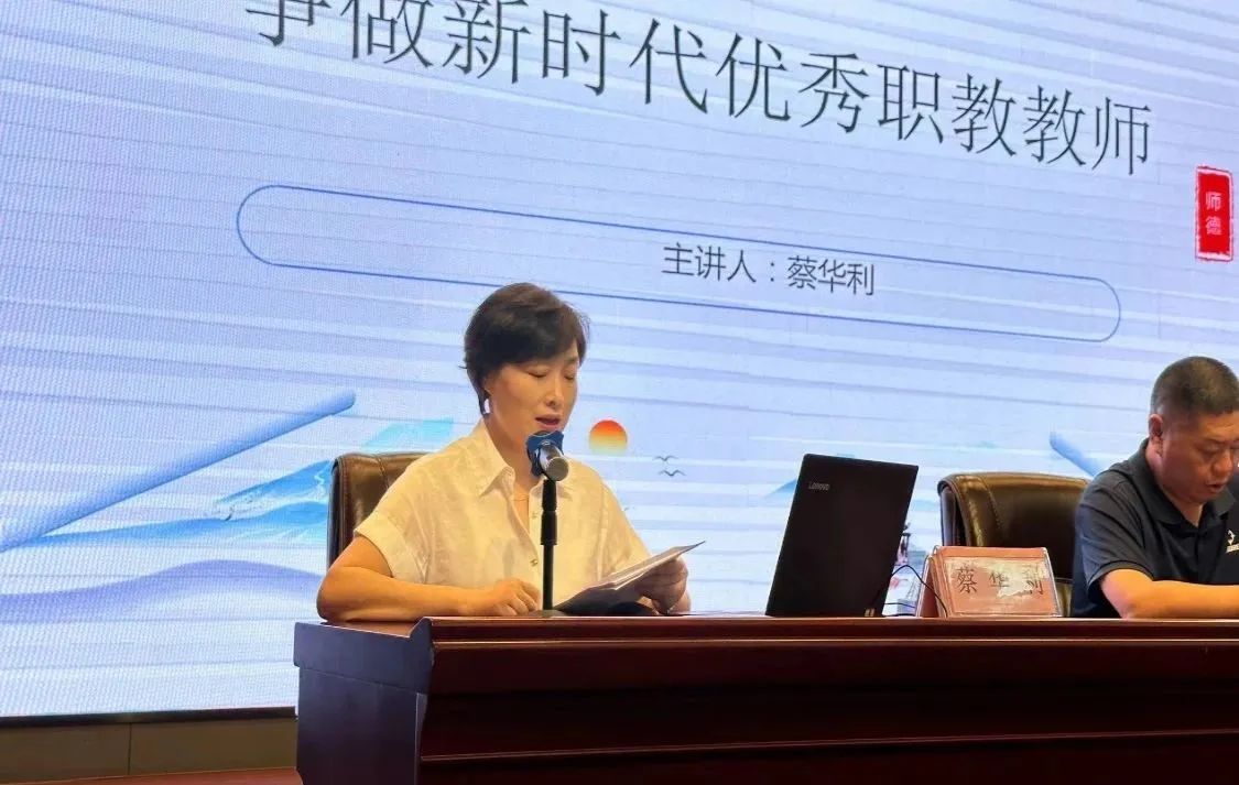 教育管理学部蔡华利主任作《坚持立德树人,争做新时代优秀职教教师》的师德师风专题培训