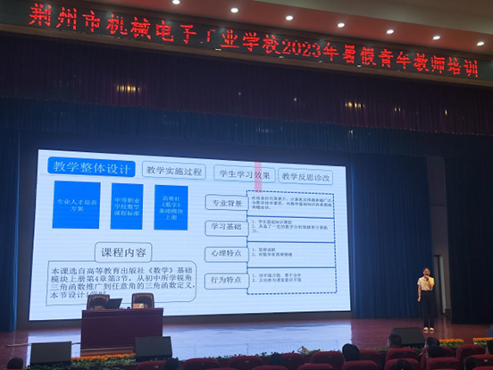 8月27日下午,荆州市机械电子工业学校2023年暑期青年教师培训在科技楼三楼报告厅圆满落幕,此次培训为期四天,共有84名青年教师参加。副校长王海鹏、教务科科长熊伟、学工科科长李晶晶及各学部、各教研室负责人出席本次培训会。