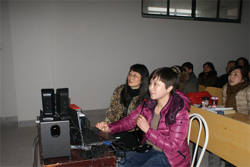 孙科长用大量的图片汇报了杜郎口中学教学和学工管理各方面的优点