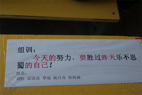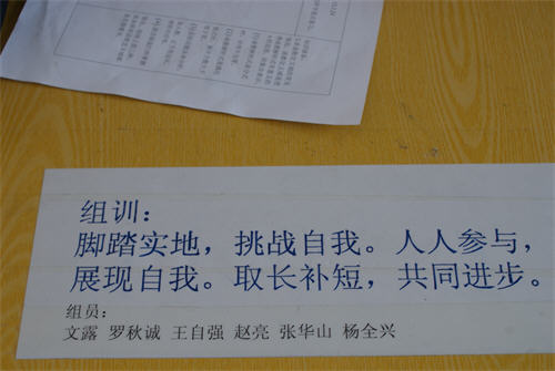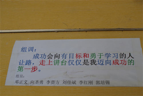 在新教学模式的促进下,很多同学有了较深的认识,每个学习小组都用学生自己的语言制定了本小组的奋斗目标。这些精彩的格言,体现了学生最真实的想法,更体现了学生的激情与智慧。