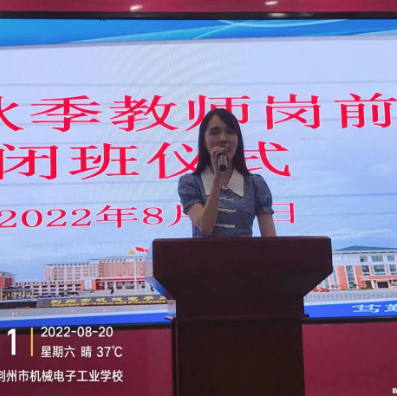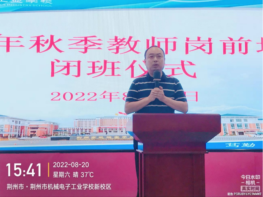 此次培训是加入荆州市机械电子工业学校大家庭的第一课,对本次安排的专题内容,要吃透精神实质、全面消化吸收,要注重学习成果转化,做到学深悟透、融会贯通,要转变身份,迅速融入学校。并且要以此次学习培训作为新的起点,以“永远在路上”的精神,把学习不断引向深入,主动学习、自觉学习,依靠学习提升能力和素质,积极适应新时代、新要求,为推动学校建设发展作出贡献。