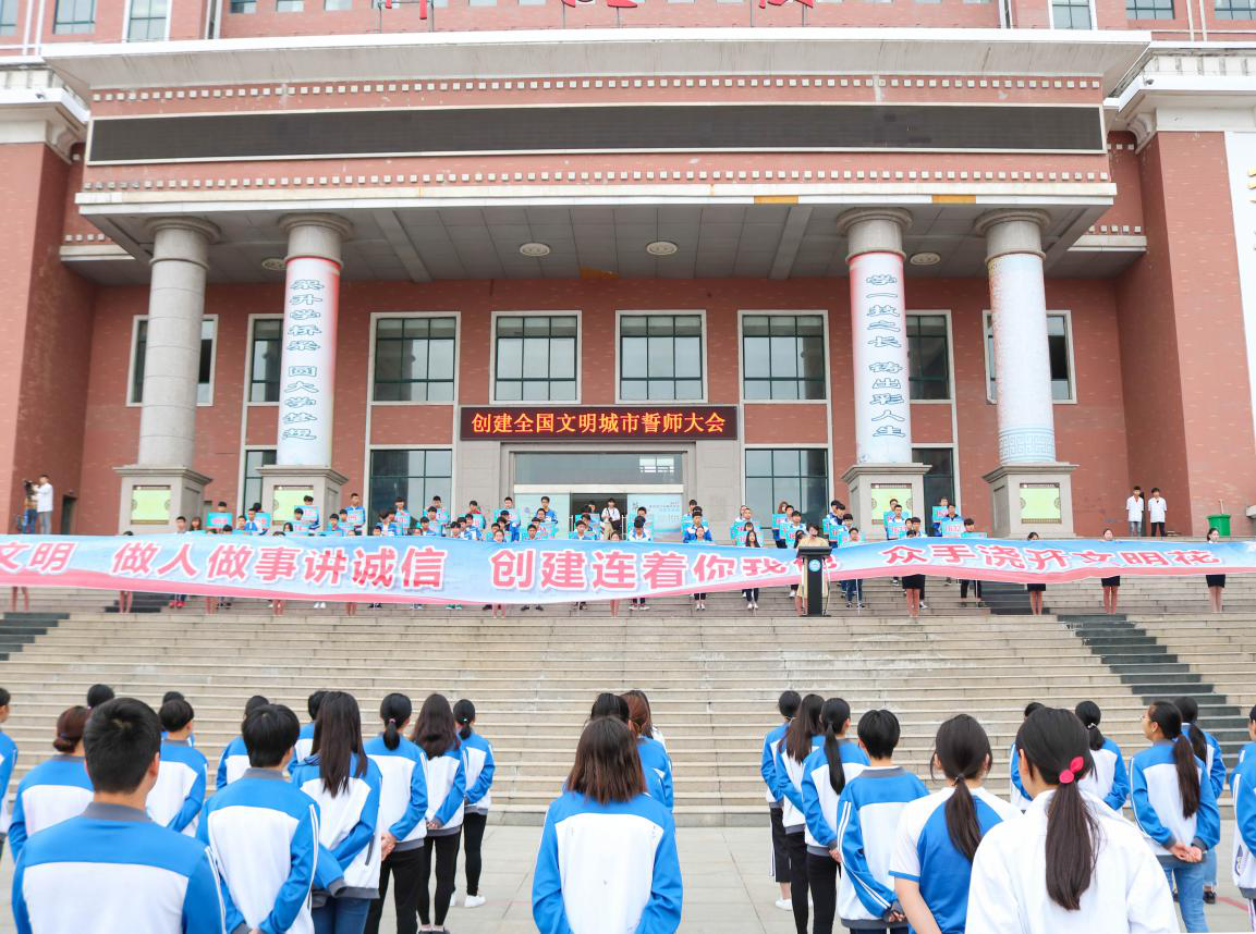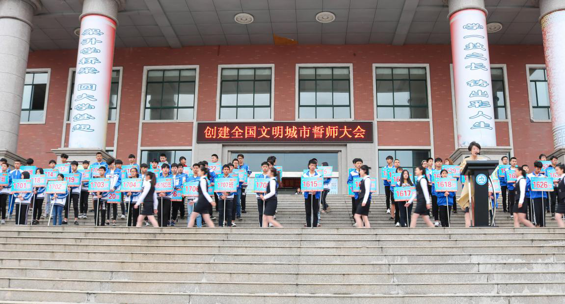 5月4日早晨7:40,我校全体师生齐聚科技楼广场举行了隆重的创建全国文明城市誓师大会。工会主席、校办主任李卓慧主持了本次誓师大会。