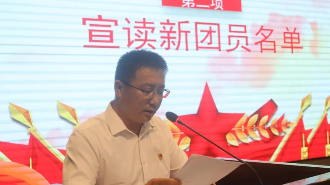 校团委书记向国伟同志宣读了《关于发展詹曼祺、倪梓康、李雅欣、黄蓉等260名优秀青年为共青团员的决定》,公布新团员名单,并向新团员表示了热烈的祝贺。