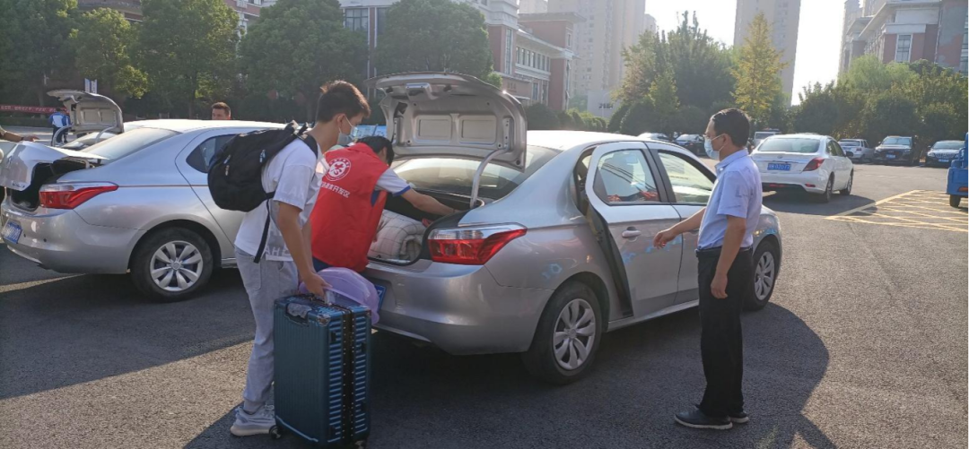由于疫情的原因,新生报到时家长及车辆不得进入学校。为方便新同学报到入学,学校组织了24名教职工驾驶私家车,做起了爱心“摆渡”。这一举措既提高了工作效率,也拉近了师生的距离,让新同学感受到了家的温暖。