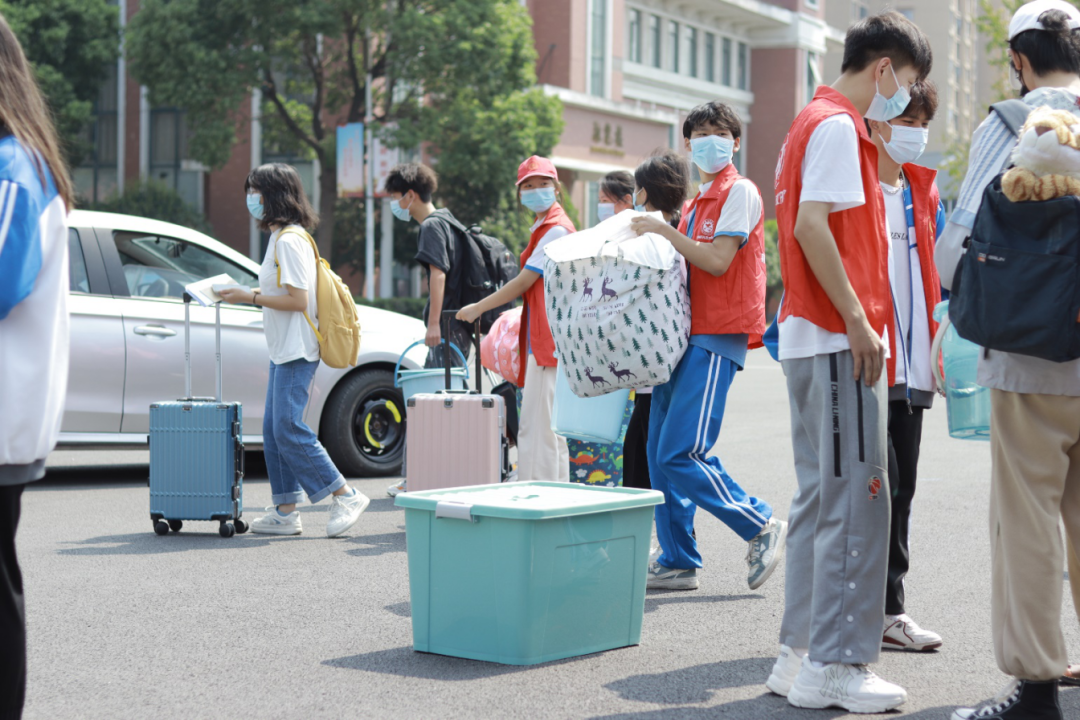学校严格按照防控常态化要求,提前制定发布新生报到须知,明确告知入校报到流程,同时要求学生和家长戴口罩,确保迎新工作安全、规范、有序。