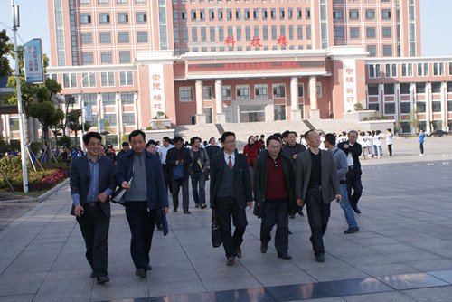 2013年荆州市职教工作会议(现场)在我校召开。2013年3月27日下午,市教育局分管职教工作的施小峰局长、市教育局职成科佘传勇科长、欧阳国雄科长及各县市区分管职教的局长、职成科科长,城区主要国示学校校长等一行30余人莅临我校参观。恰逢周三下午是学校学生活动时间,校园广场二千多名学生为即将开幕的运动会正在准备各种大型团体操的排练,热烈的气氛,震撼的场景,令与会各位领导赞叹不已,给他们留下了深刻的印象。与会领导还参观了学校实训、学生食堂、学生公寓、田径运动场等场地。在学校行政楼三楼会议室,市教育局组织与会的各位领导座谈,在座谈会上,创业学校、洪湖市教育局、石首市教育局、荆州区教育局、荆州机械电子工业学校的各位校长、局长就招生工作、学生顶岗实习、教学管理、学校发展等工作进行了发言。