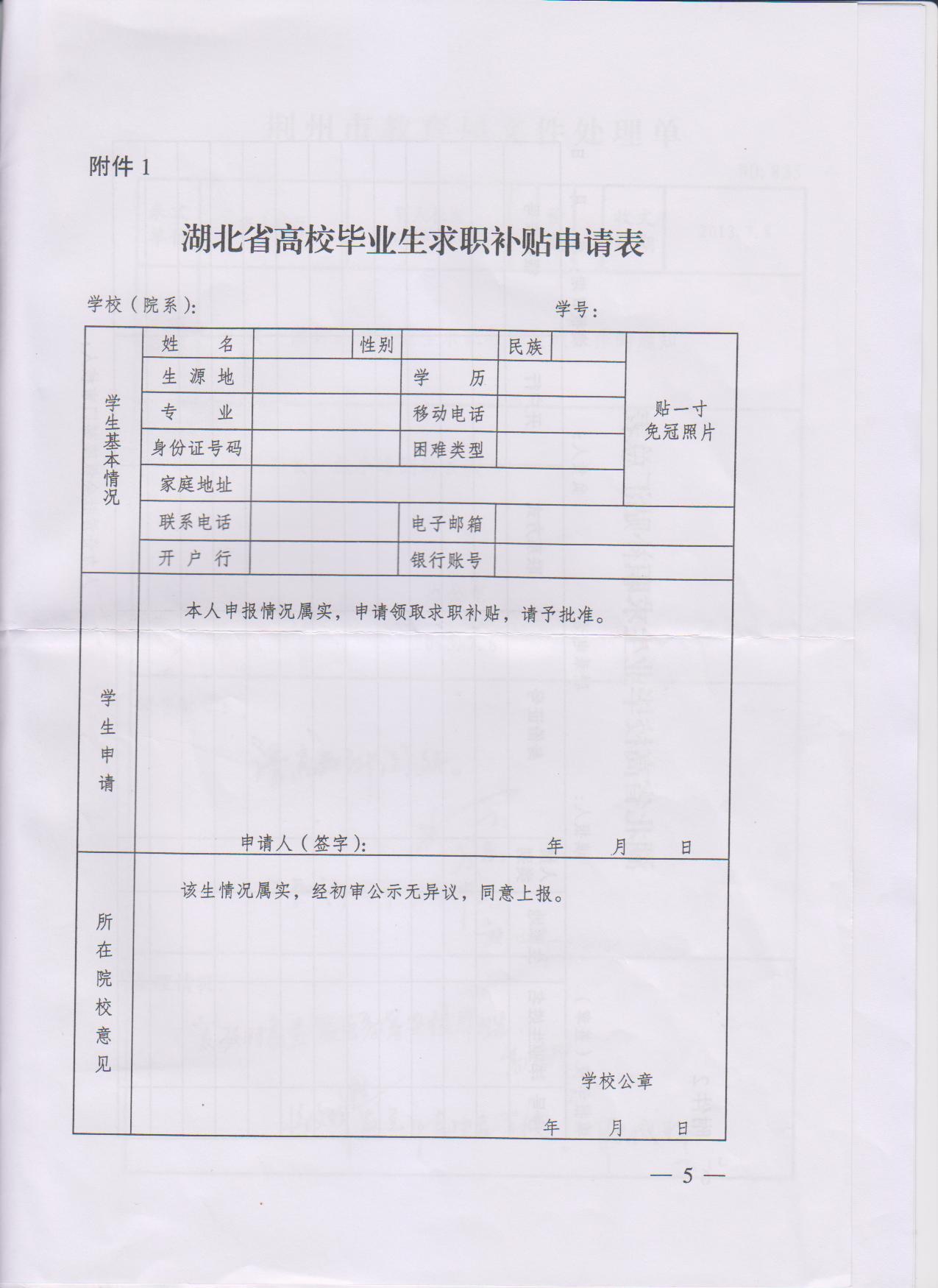 附件:1、《湖北省高校毕业生求职补贴申请表》