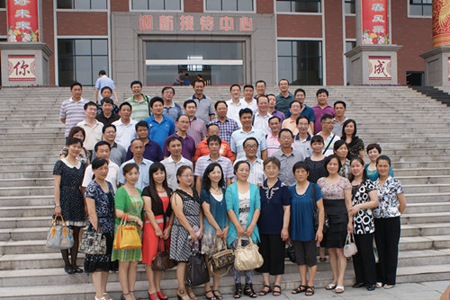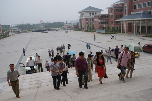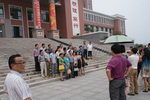 校友们在学校领导的陪同下参观了新校区并合影留念。