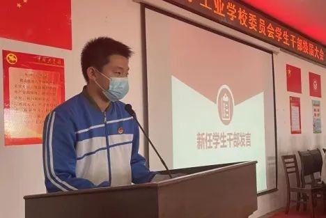 随后,新一届学生干部逐一上台进行表态发言。他们表示:将从上一任学长、学姐手中接过接力棒,做有责任、有担当的学生干部 。