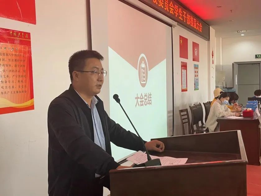 徐琰老师代表学校团委高度肯定了上一任学生干部的工作,同时也对即将上任的新一届学生干部表示热烈祝贺并提出了三点希望。