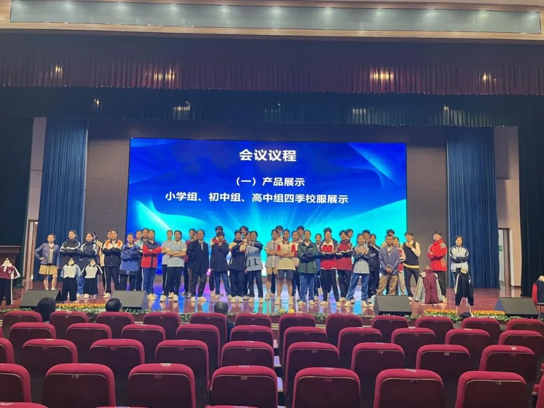 展示会上,由我校41名学生组成的模特队,分别进行了国学风、运动风、英伦风等多种风格的校服秀,赢得了台下阵阵掌声。