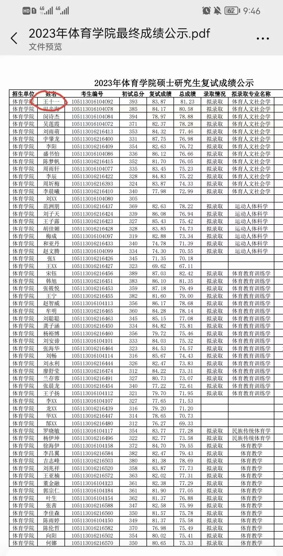 我校毕业生王十一成华师研究生啦!骄傲点赞!
