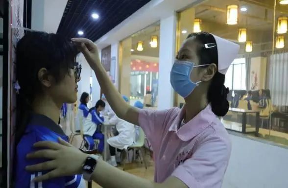 此次健康体检在我校四个学部的各年级中抽选了6个班级,共计300余人进行体检。体检包括学生身高、体重、视力、血压、口腔龋齿、脊柱弯曲6个检查项目,医务人员对每个学生进行了全面细致的检查,并对体检的结果做了详细的记录。