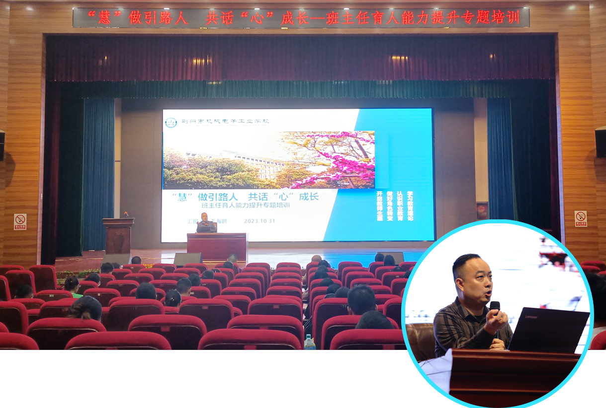 为深入学习贯彻习近平总书记关于教育工作的重要精神,落实立德树人根本任务,深化“三全育人”综合改革,助力青年班主任提升政治素养与理论水平,提升班主任育人能力,推进学校德育工作师资队伍建设,荆州市机械电子工业学校于10月31日下午在科技楼报告厅开展了班主任育人能力提升专题培训活动。会议由团委书记向国伟主持,学校党委委员、副校长王海鹏进行了专题讲座。