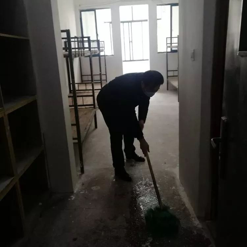 专班成员现场打扫卫生