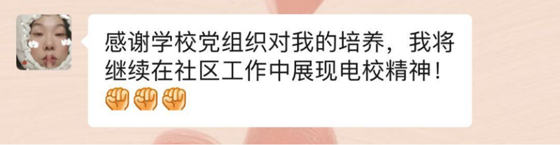 胡蓉蓉还说作为一名党员教师,她一定要在服务的社区把各项工作做好,不辜负学校党委的期望与关怀。