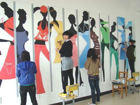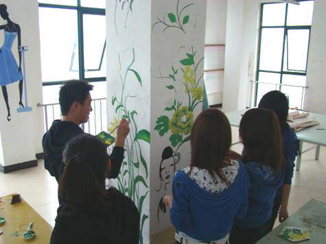 为增强学生专业实践技能由美术专业向国伟老师于2011年3月份开始带领11级美术专业学生进行艺术楼墙体彩绘装饰,通过这种实践与专业相结合的教学方法,不仅大大提高学生的学习积极性和学习成就感而且为我校校园文化建设增添了新的风景线。