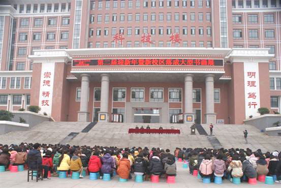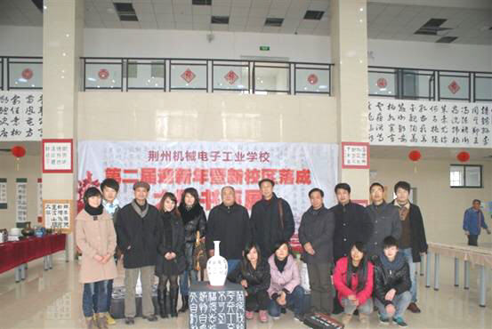 2011年12月我校美术专业开展了盛大的书法特色课堂教学成果展,展览开幕式邀请了荆州文联主席张伟、荆州美术家协会会长严良文、荆州书法家协会秘书长邓官林等艺术家进行开幕仪式的嘉宾,由教学主管校长黄校长和教务科曹科长发表讲话,校团委李书记主持会议。