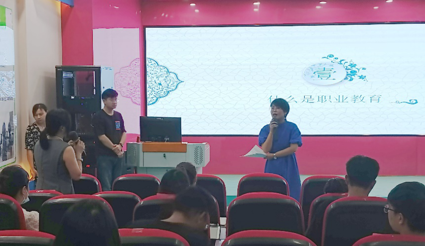 纪委书记李卓慧作《心有大我 做好职教好老师》专题讲座,阐述中职教育的类型、相关的法律法规、办学方向、2553工程、技能高考形势与组成等。她明确指出,职业教育与普通教育具有同等重要的地位,职业教育前景⼴阔、大有可为。