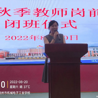 此次培训是加入荆州市机械电子工业学校大家庭的第一课,对本次安排的专题内容,要吃透精神实质、全面消化吸收,要注重学习成果转化,做到学深悟透、融会贯通,要转变身份,迅速融入学校。并且要以此次学习培训作为新的起点,以“永远在路上”的精神,把学习不断引向深入,主动学习、自觉学习,依靠学习提升能力和素质,积极适应新时代、新要求,为推动学校建设发展作出贡献。